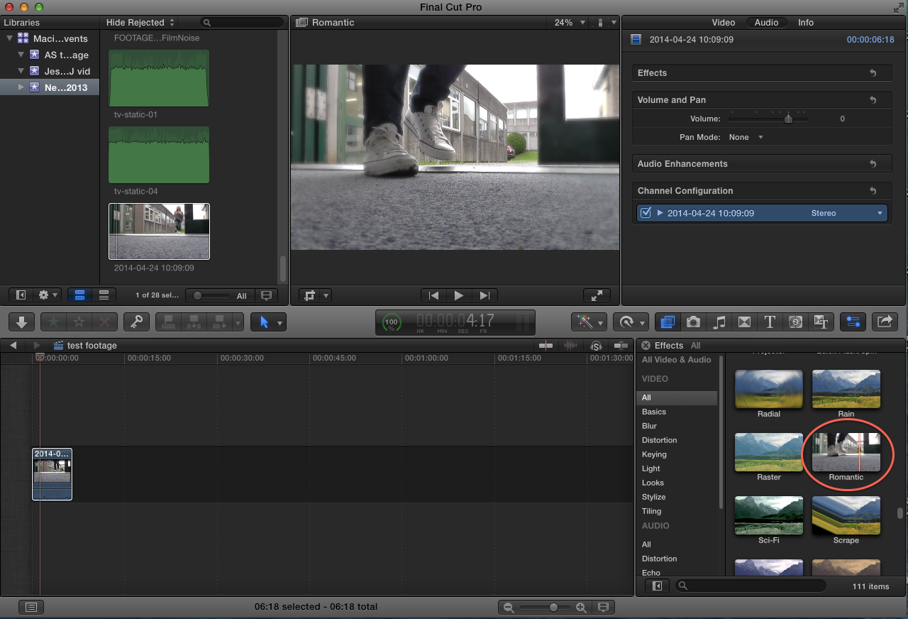 Another filter that we liked in Final Cut was called 'Romantic', it added a slightly hazy effect to the shot.